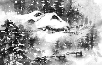 雪景色(冬の水墨画)